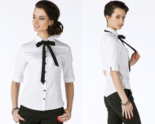 Biała koszula damska krótki rękaw z czarną wstążką Paris